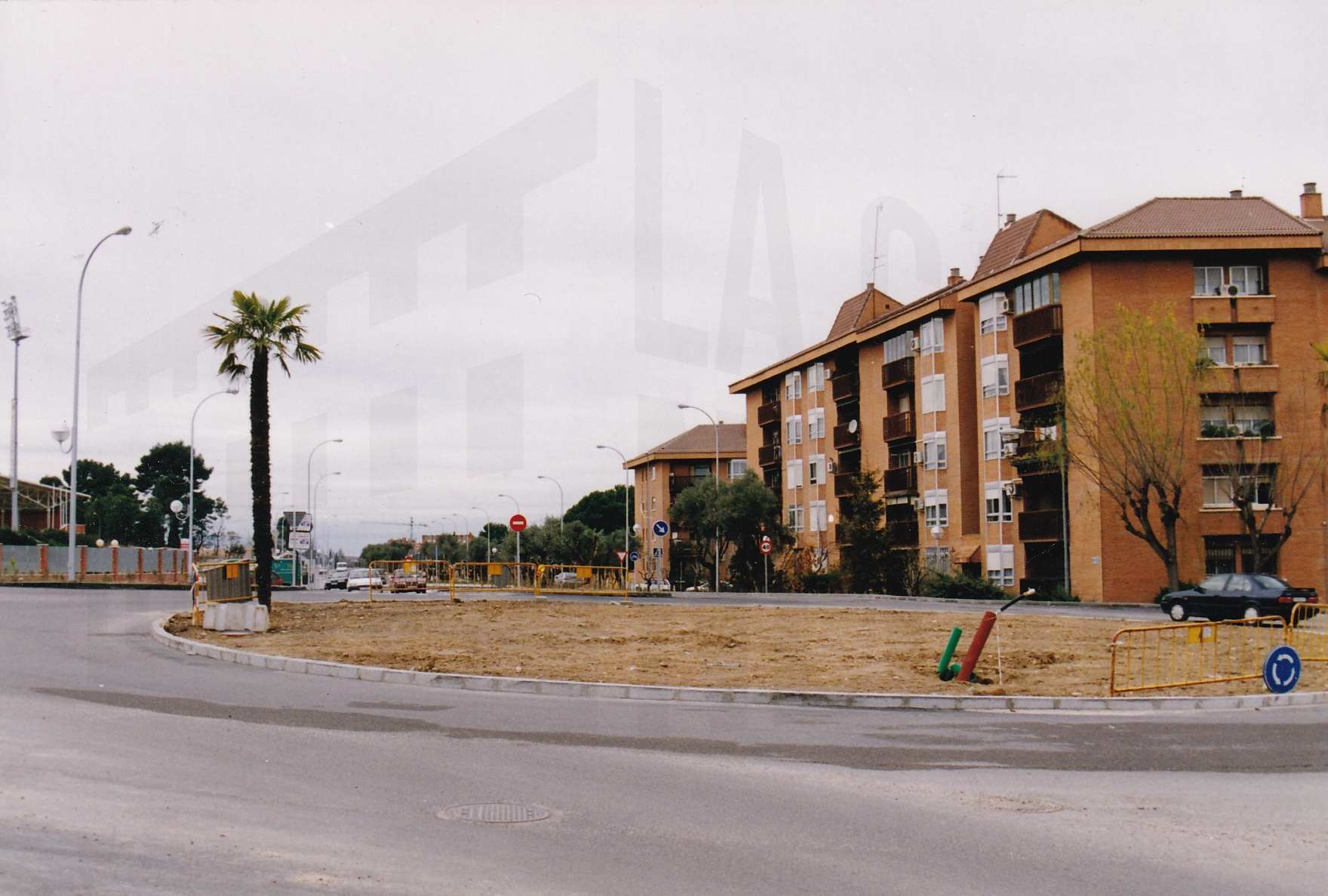 Reverso: "OBRAS FUENTE DE LA REINA (CARRETERA DE ANDALUCIA) ROTONDA DE CARRETERA D -- NOV 2000"