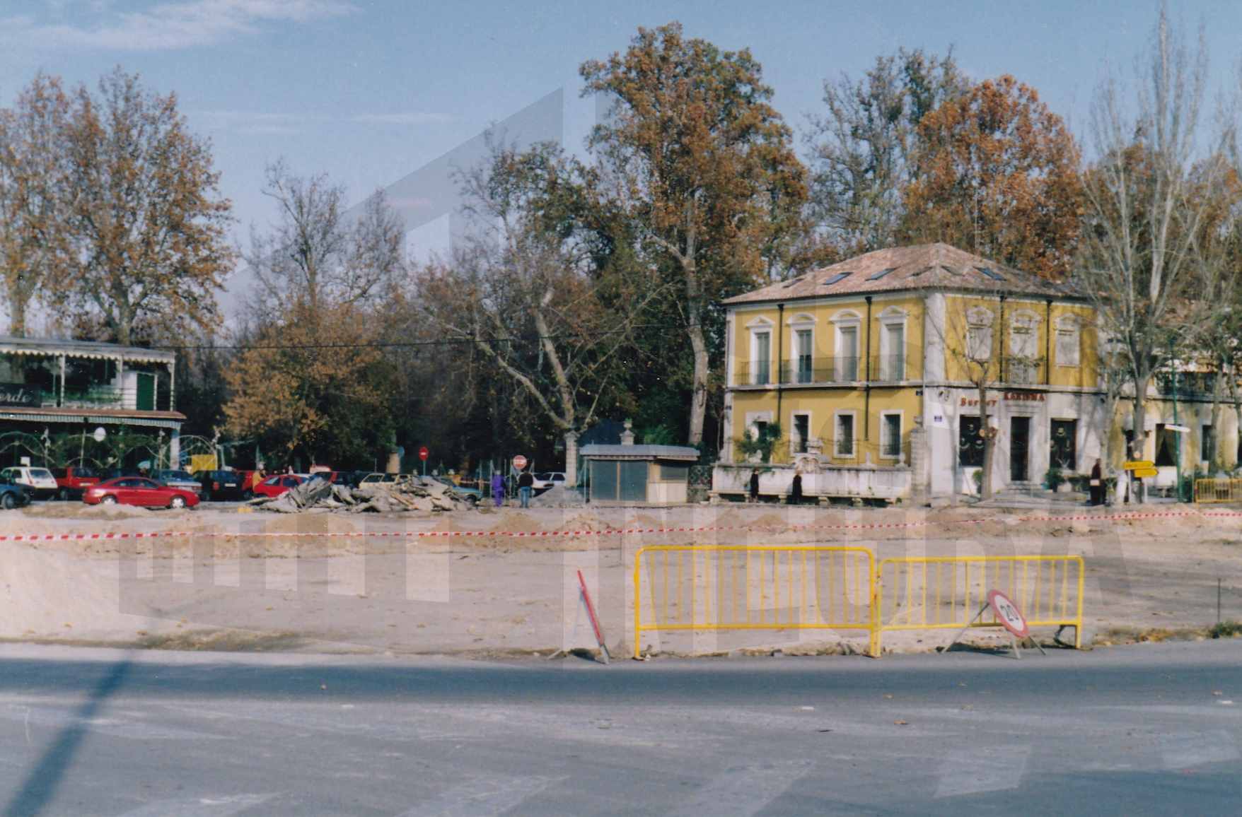 Plaza de Santiago Rusiñol de Aranjuez en obras con el Jardín del Parterre al fondo
