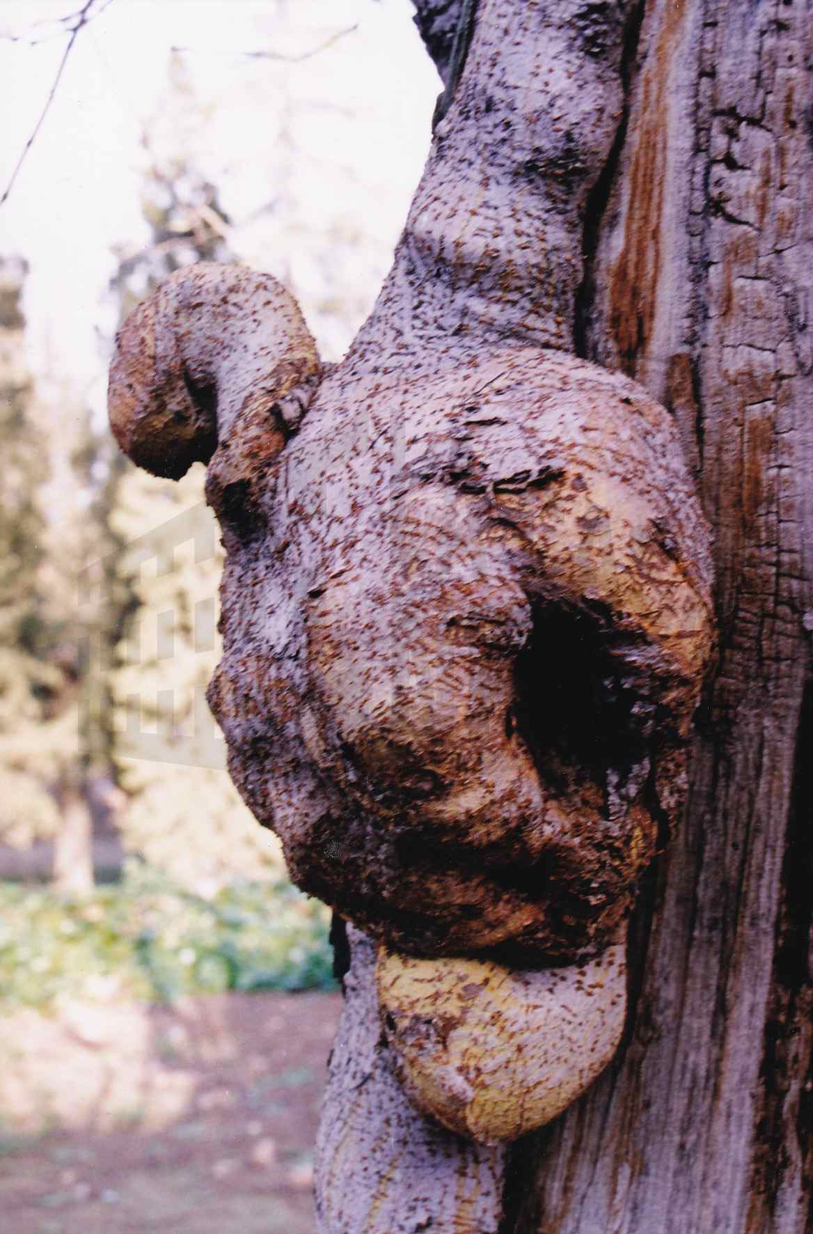 Protuberancia y hendidura circular en el tronco de un árbol