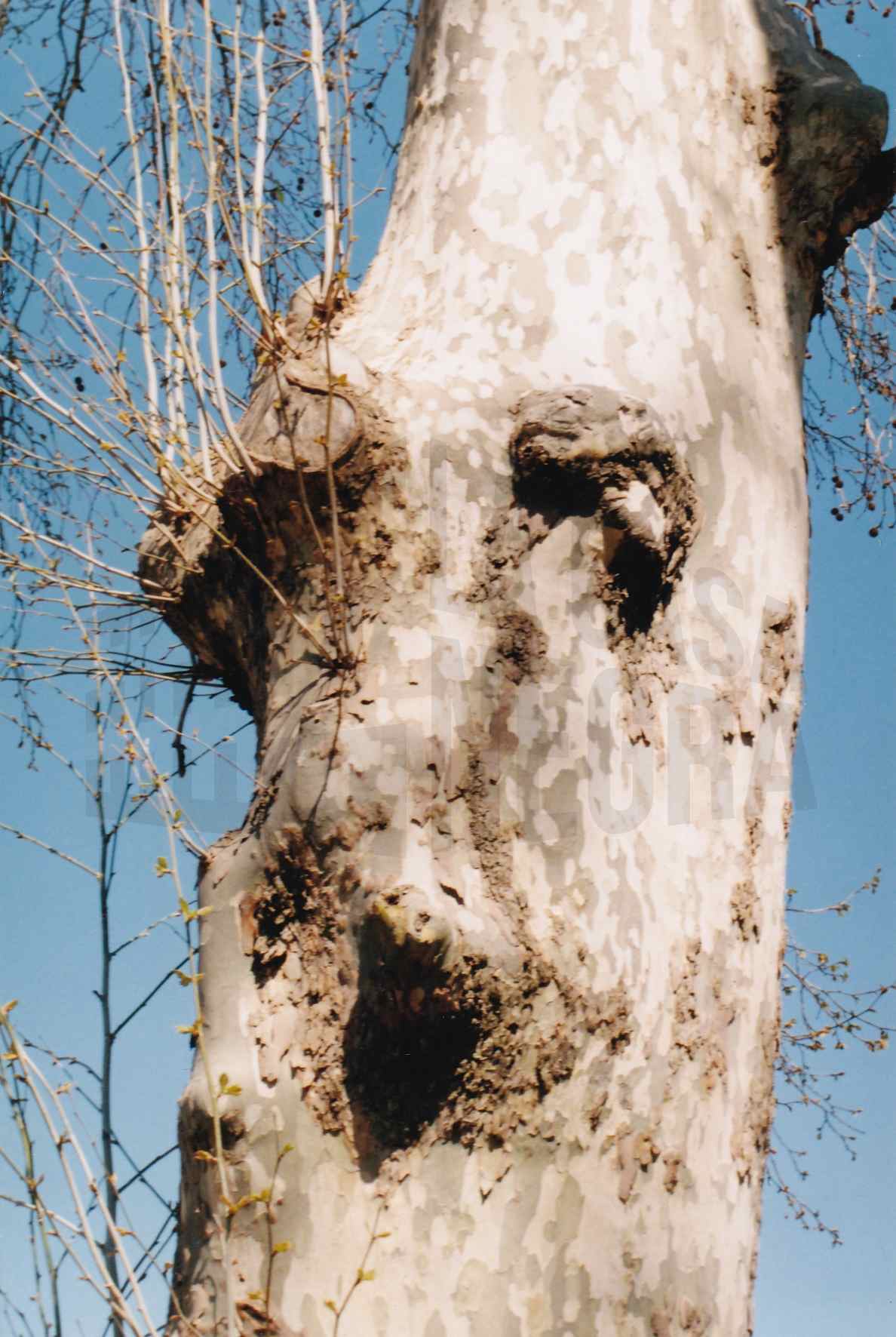 Protuberancias y pequeñas ramas en el tronco de un plátano
