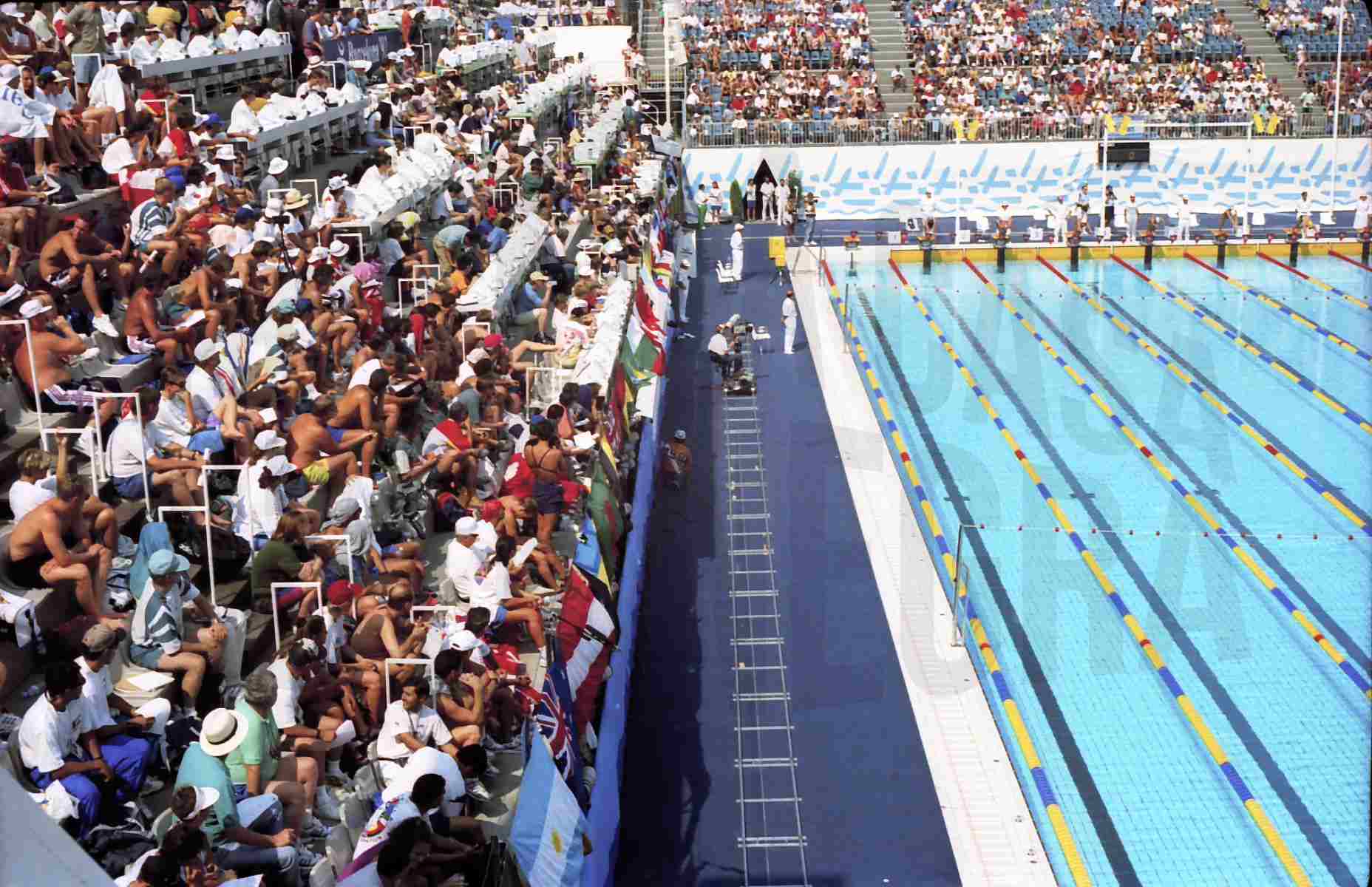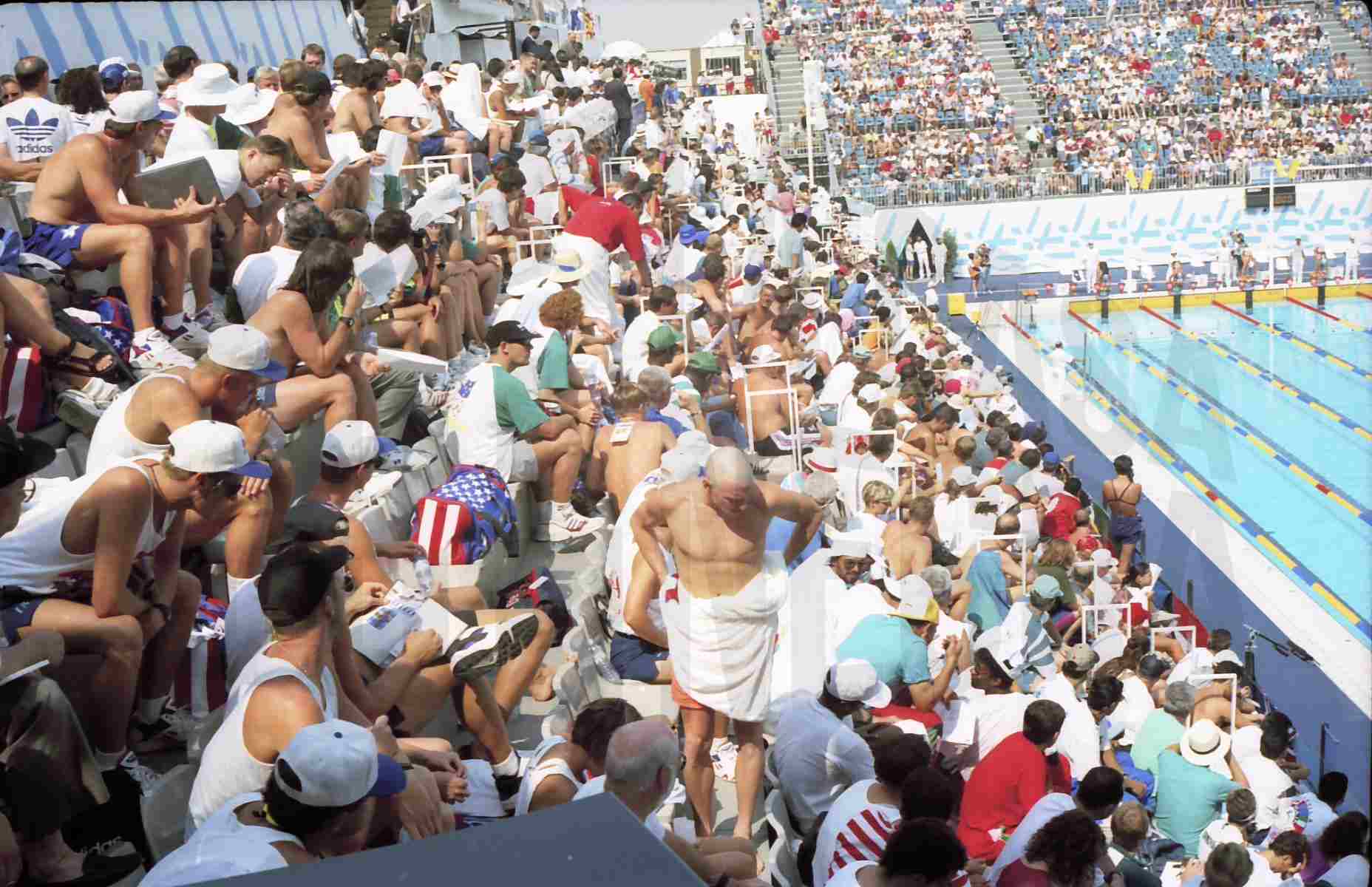 Público y atletas durante unas pruebas de natación de los Juegos Olímpicos 1992