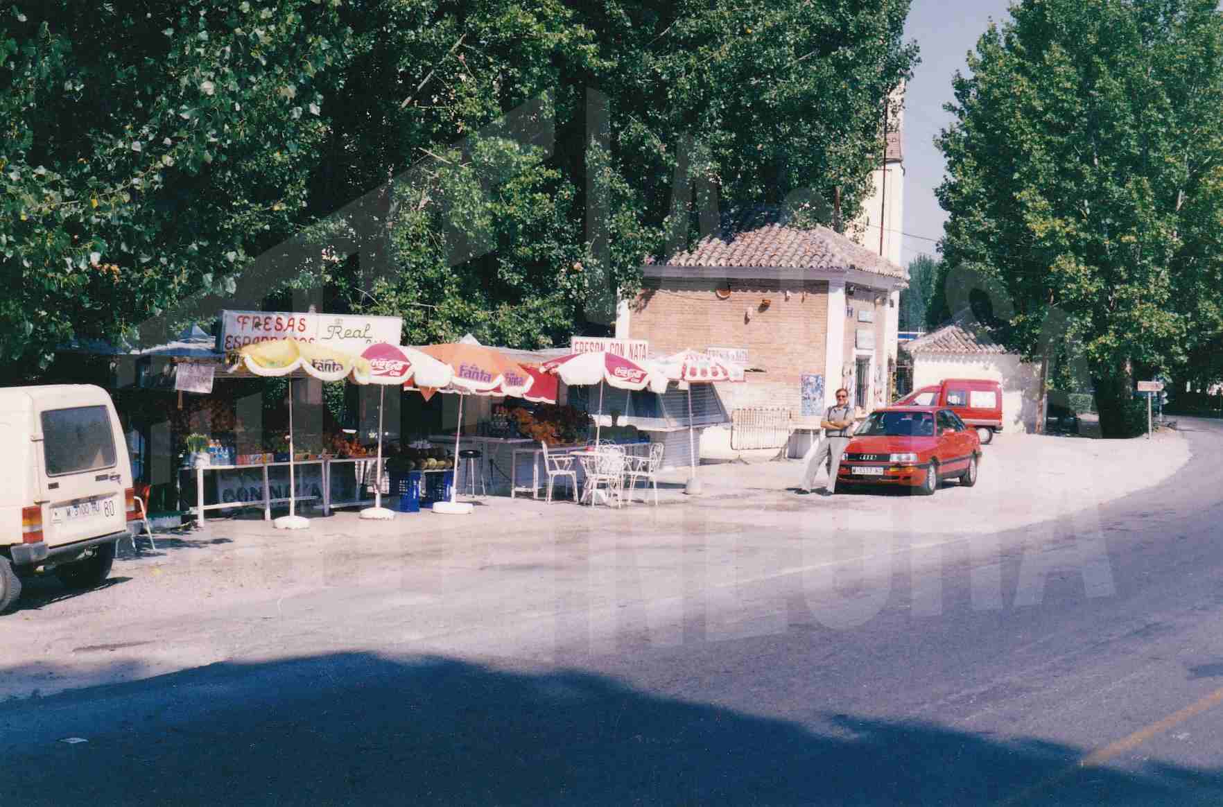 Puestos de venta de fresón y recuerdos en la entrada norte a Aranjuez