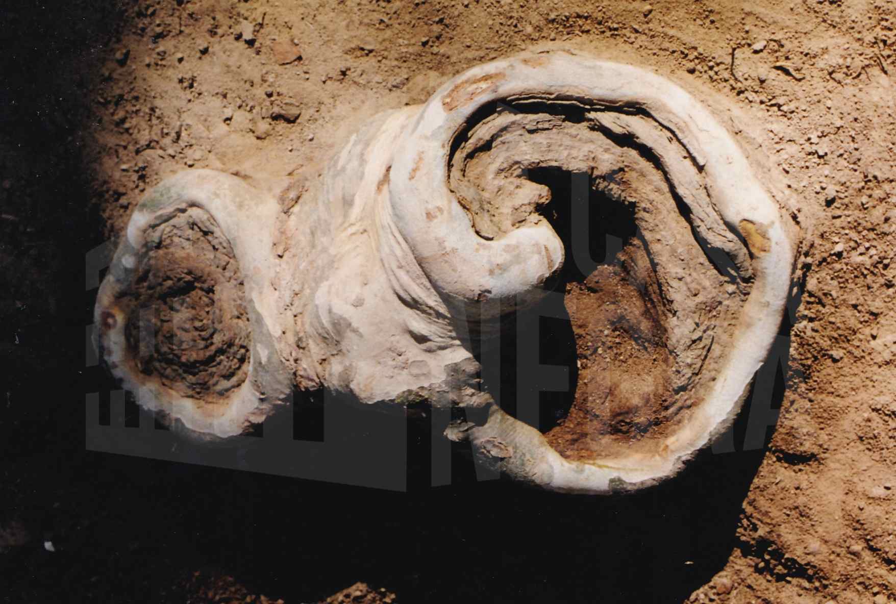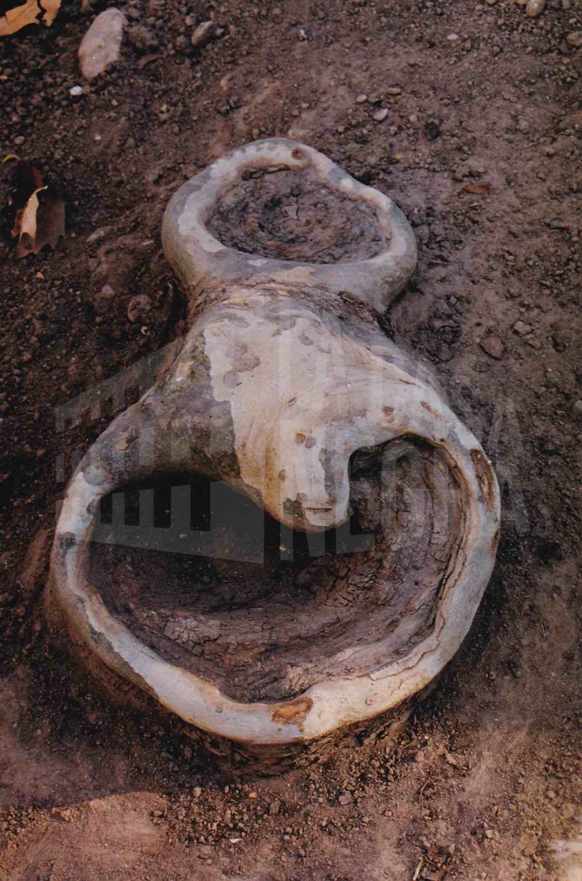 Raíz de un plátano con agujeros y forma de caracola