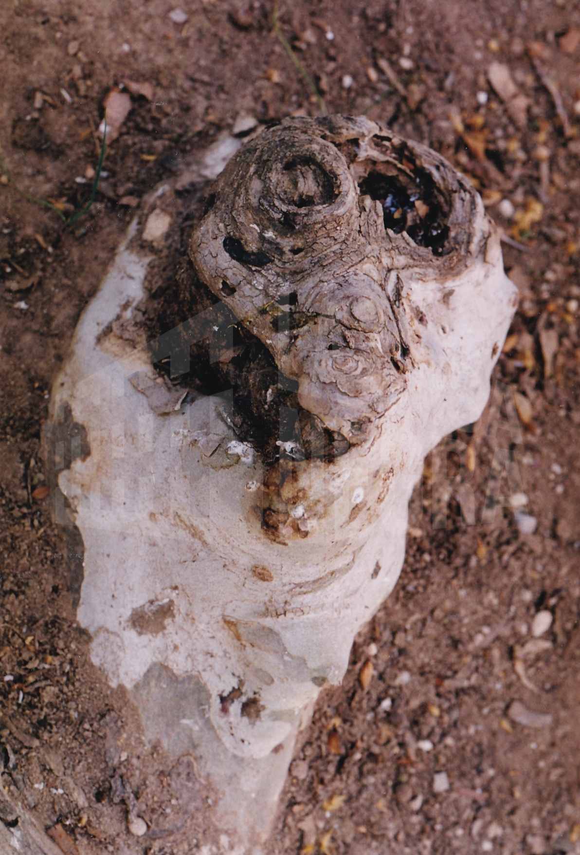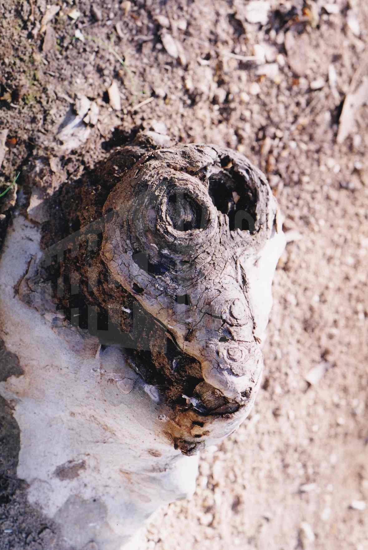 Raíz de un plátano con forma de cabeza de animal
