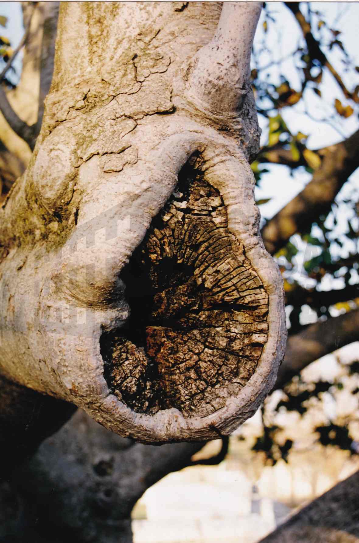 Ramas y tronco de un magnolio con una hendidura
