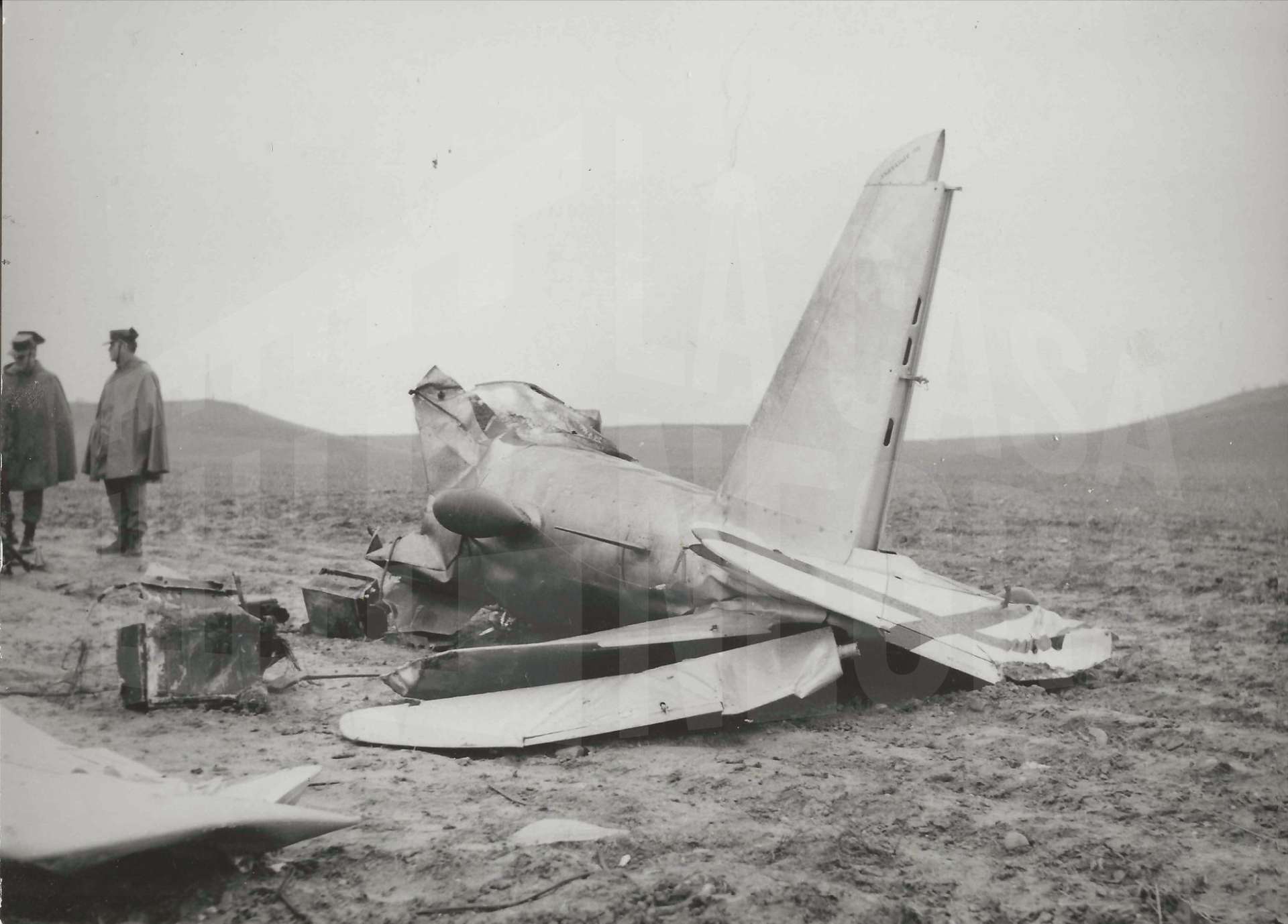 Reverso: "ACCIDENTE AEREO EN LA FINCA VILLAMEJOR DE ARANJUEZ EL 20 FEBRERO DE 1968"