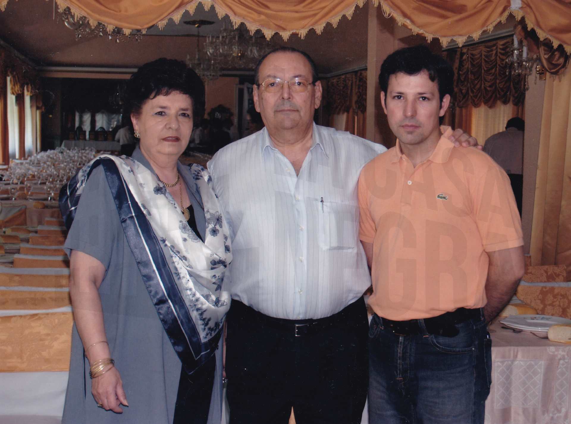Retrato de José Tomás Cot Díaz-Heredero; Consuelo López Rodríguez, dueños del Hotel Restaurante Delicias, y su hijo Fernando Cot López en Aranjuez