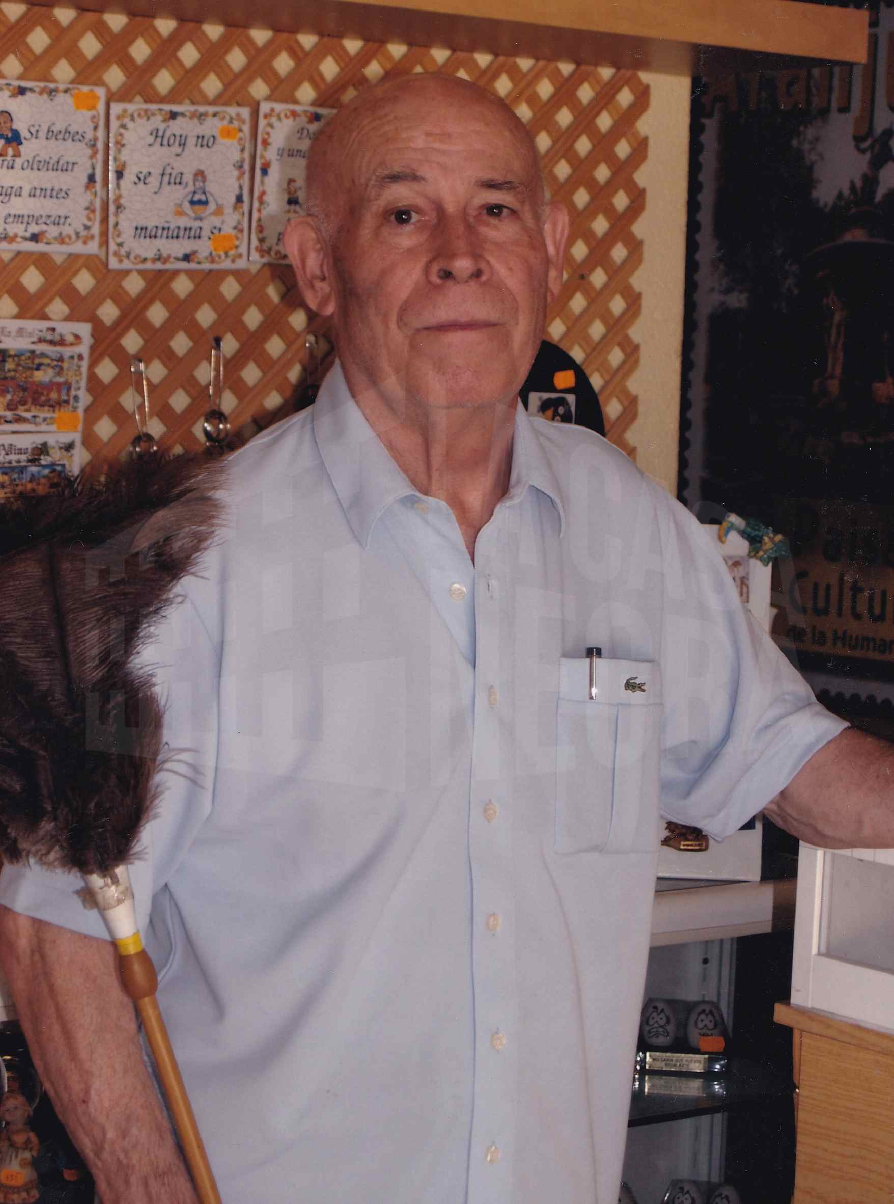 Reverso: "JOSE TOMAS COT DIAZ-HEREDERO - INDUSTRIAL HOSTELERO DUEÑO DEL HOTEL DELICIAS CASADO CON CONSUELO LOPEZ RODRIGUEZ QUE DESDE SU CASAMIENTO COMPARTE CON SU ESPOSO LAS TAREAS DEL NEGOCIO JOSE TOMAS JUNTO CON SU HERMANO JOAQUIN HEREDARON DESDE SUS ABUELOS MATERNOS - PADRES Y TIAS EL RESTAURANTE EL RANA VERDE FUNDADA FUNDADO A PRIMEROS DEL SIGLO xx POR LOS ABUELOS. NACIO EN LA CASA Y DESDE ENTONCES LLEVA EN SU SANGRE EL GREMIO DE LA HOSTELERIA - HACE AÑOS COMPRARON EL HOTEL RESTAURANTE DELICIAS Y AÑOS DESPUES DIVIDIERON EL NEGOCIO TOCANDOLE EL HOTEL RESTAURANTE DELICIAS A JOSE TOMAS QUE HOY SIGUE EN LA BRECHA YA CON ALGUN HIJO Y OTRO NEGOCIO HOSTELERO EN LA CARRETERA DE ANDALUCIA ENTRE ARANJUEZ Y OCAÑA. EN LA FOTO SE APRECIA A SU HIJO FR FERNANDO 25 JUN 2006"