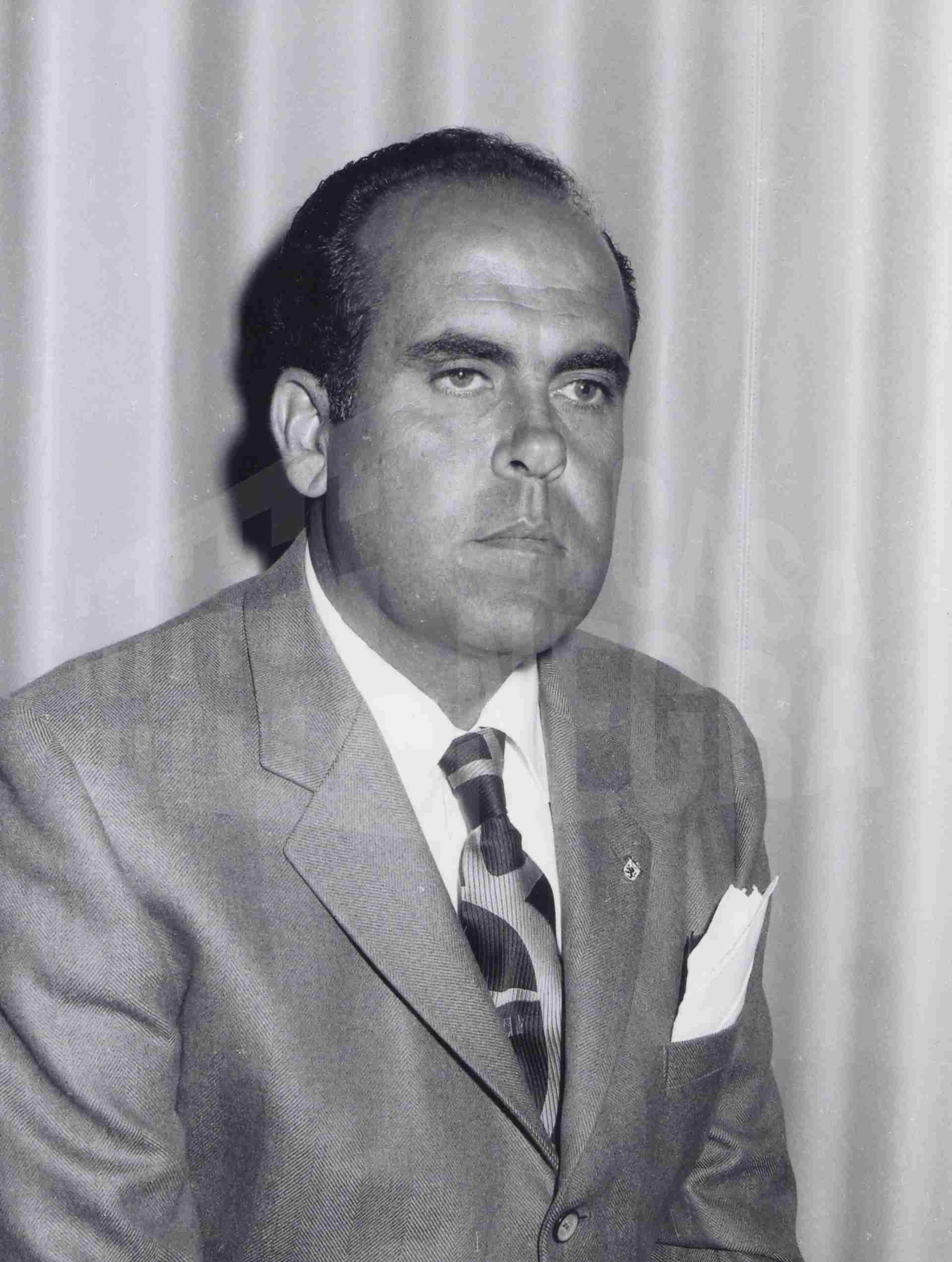 La foto lleva adherida una etiqueta escrita a máquina: «Lorenzo de la Vega Martinez.- Industrial y Fundador del Club de Natación A.D.A.S»