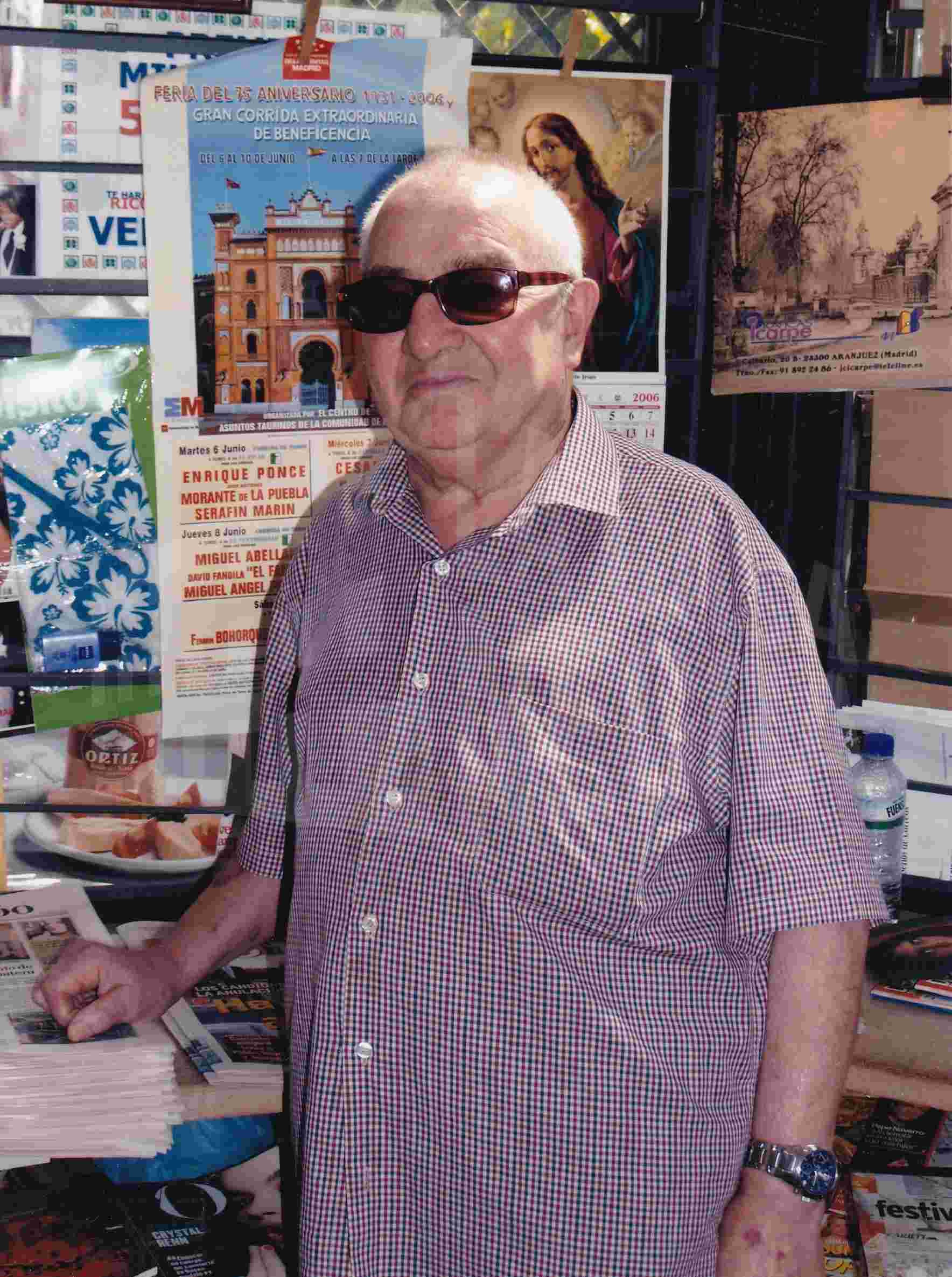Reverso: "RAFAEL JUAN BANEGAS REGENTA DESDE EL 5 DE MARZO DE 1951 UN KIOSKO DEDICADO RECEPTOR DE APUESTAS DEL ESTADO - SIENDO LAS QUINIELAS O EL CAMBIO DE NOVELAS CON LO QUE COMENZÓ HACE 55 AÑOS - EL KIOSKO INSTADO EN LA PLAZA DE LA CONSTITUCION SE COMPLEMENTA CON PRENSA REVISTAS Y OTROS ARTICULOS, TIENE OTRO ESTABLECIMIENTO DEL MISMO RAMO EN LA CALLE DE STUART RAFAEL EN LA ACTUALIDAD TIENE 75 AÑOS DE EDAD 01 JUL 2006"