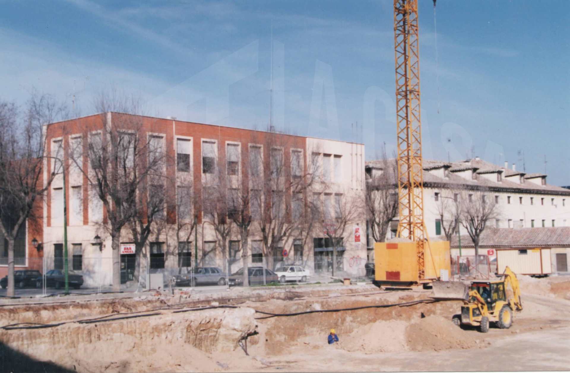 Solar tras el derribo del edificio del antiguo Hospicio y fachada de la Casa del Pueblo de la UGT, en Aranjuez