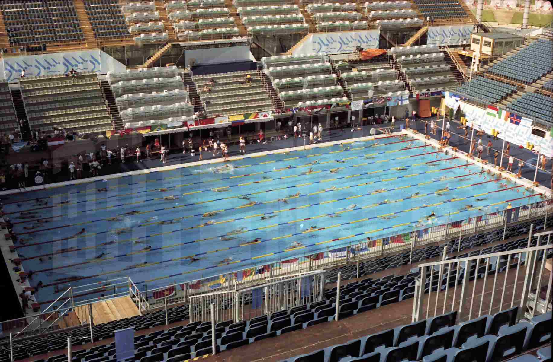 Un fotógrafo en la sede de las pruebas de natación de los Juegos Olímpicos de 1992