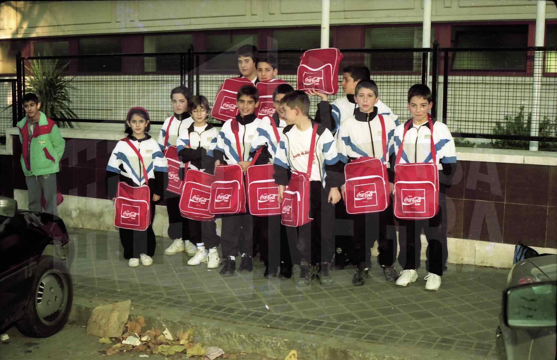 Un grupo de niños y niñas con bandoleras de Coca Cola