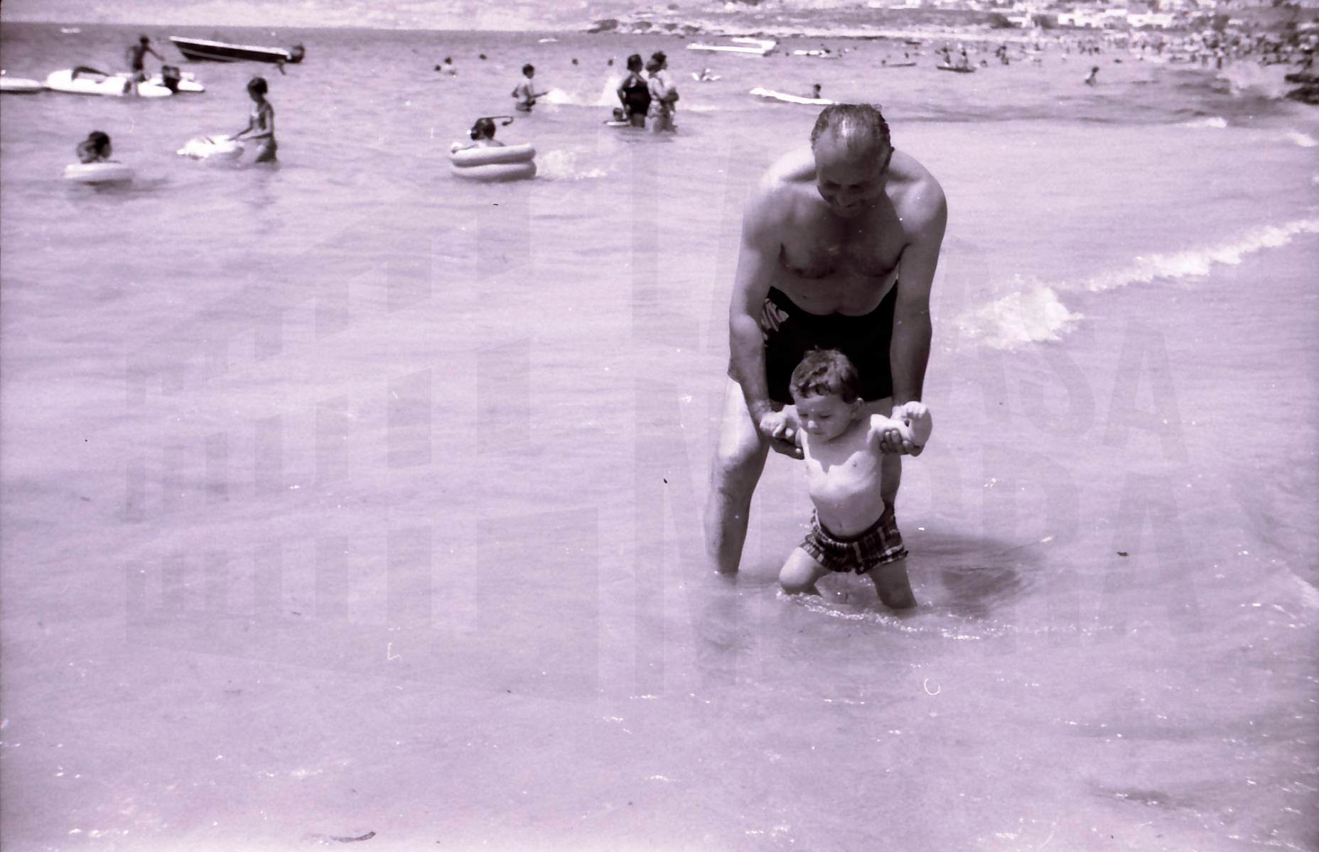 Una mujer paseando con un niño por la orilla del mar en Calpe