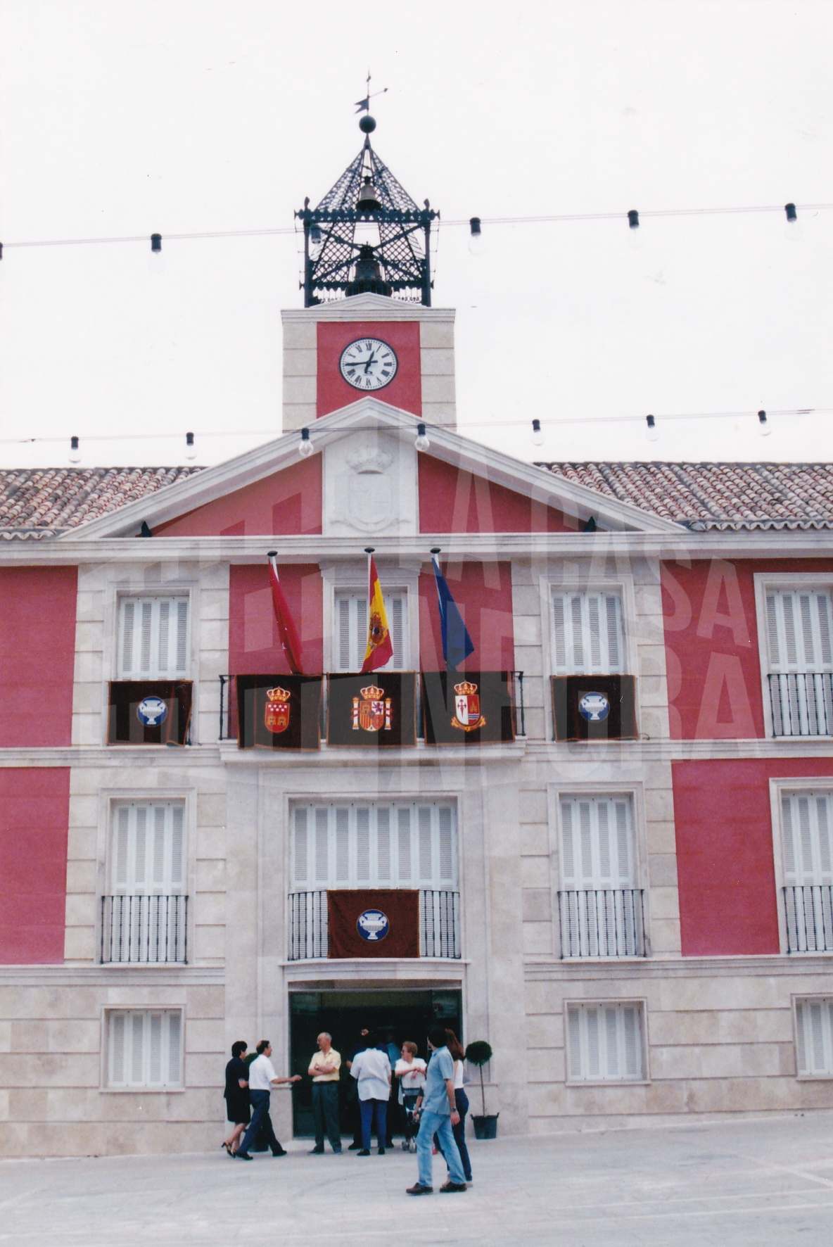 Varias personas en la Plaza de la Constitución de Aranjuez, junto al Ayuntamiento