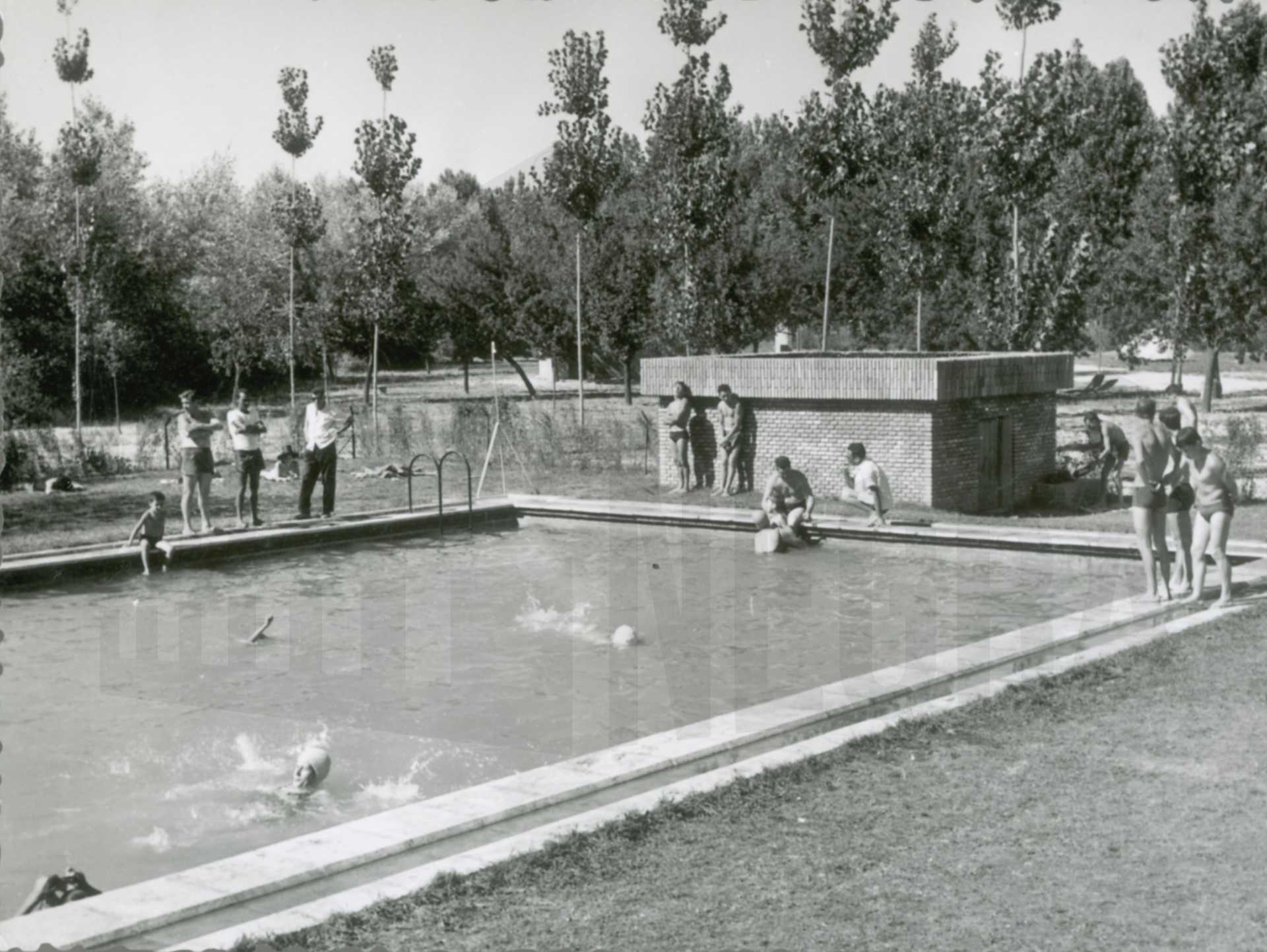 Varias personas en una piscina al aire libre
