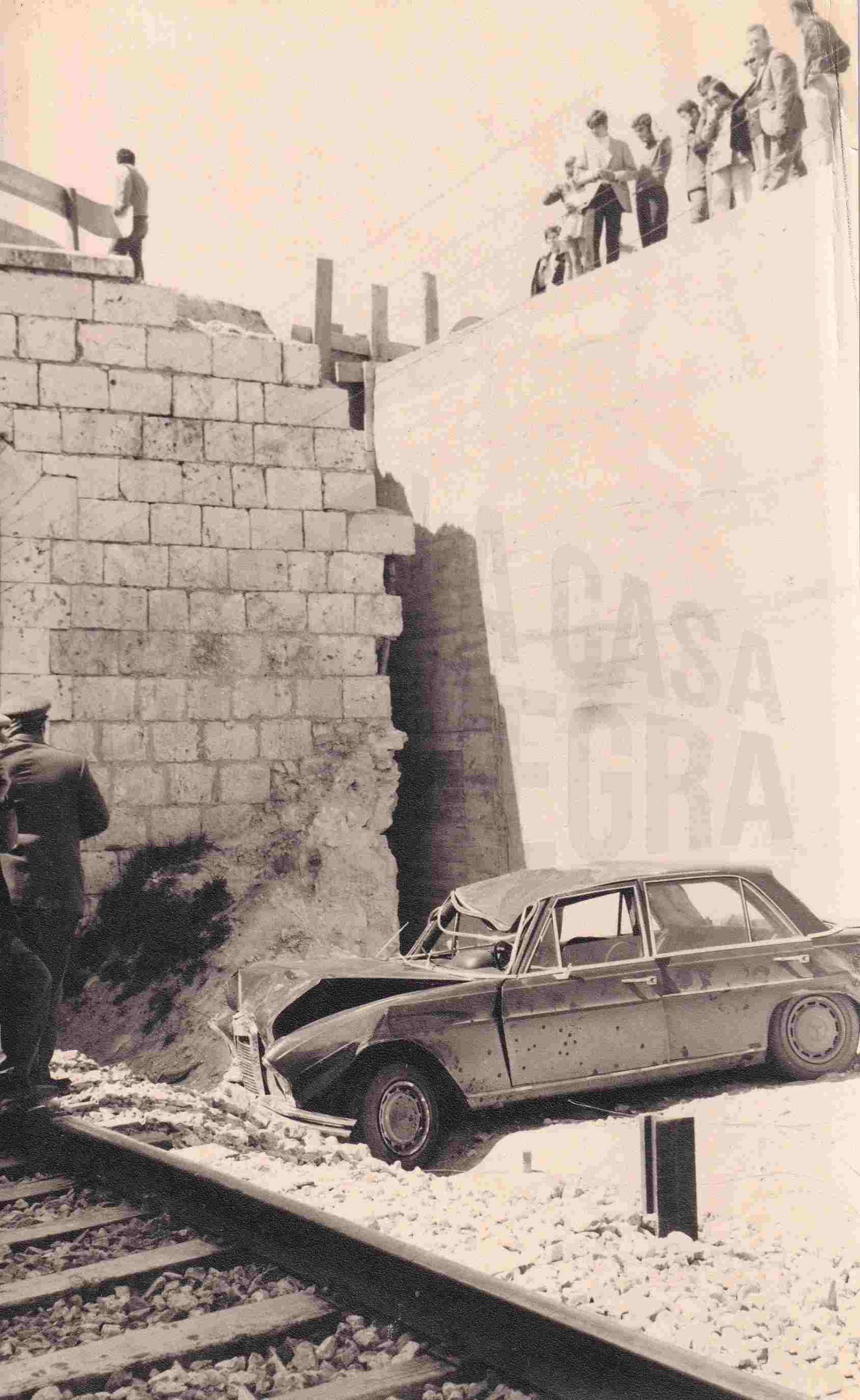 Sé el primero en valorar “Varias personas observan un coche caído sobre las vías del tren bajo el Puente del Regajal en Aranjuez”