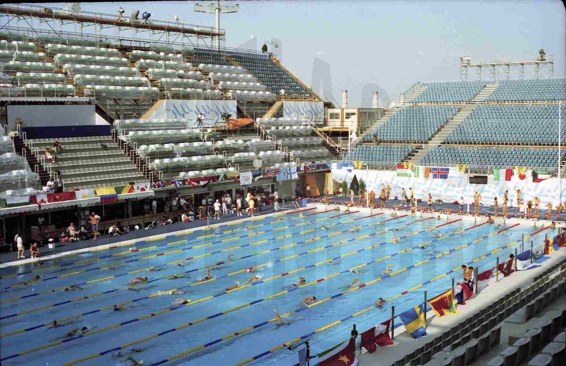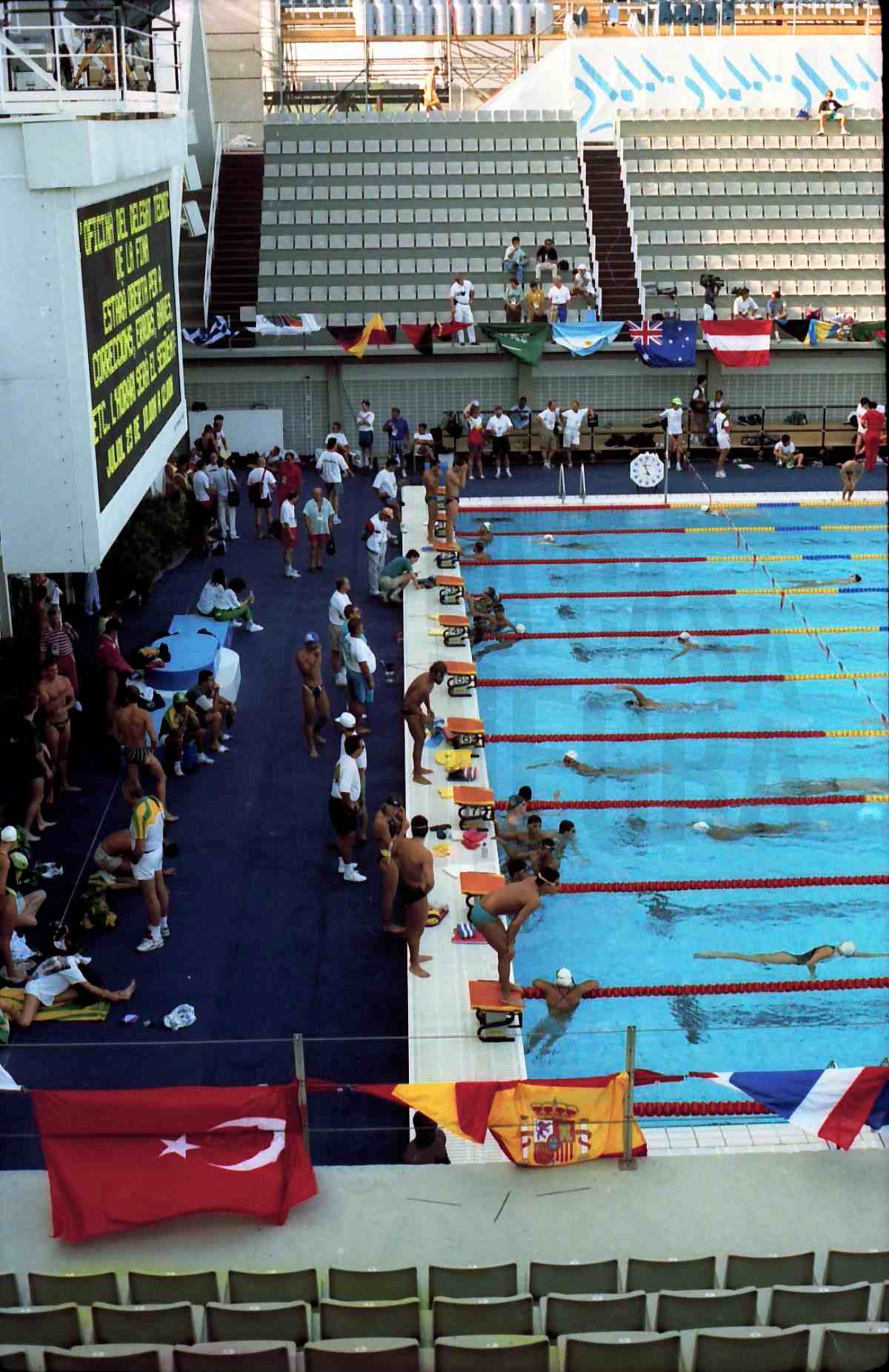 Varios atletas en la piscina sede de las pruebas de natación de los Juegos Olímpicos de 1992