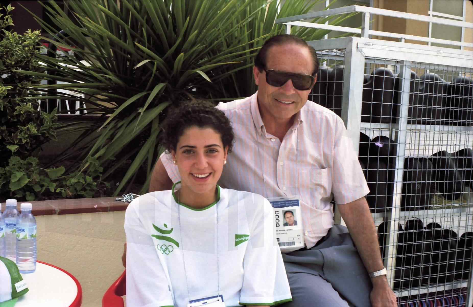 Varios atletas en la sede de las pruebas de natación del Pentatlon moderno de los Juegos Olímpicos de 1992