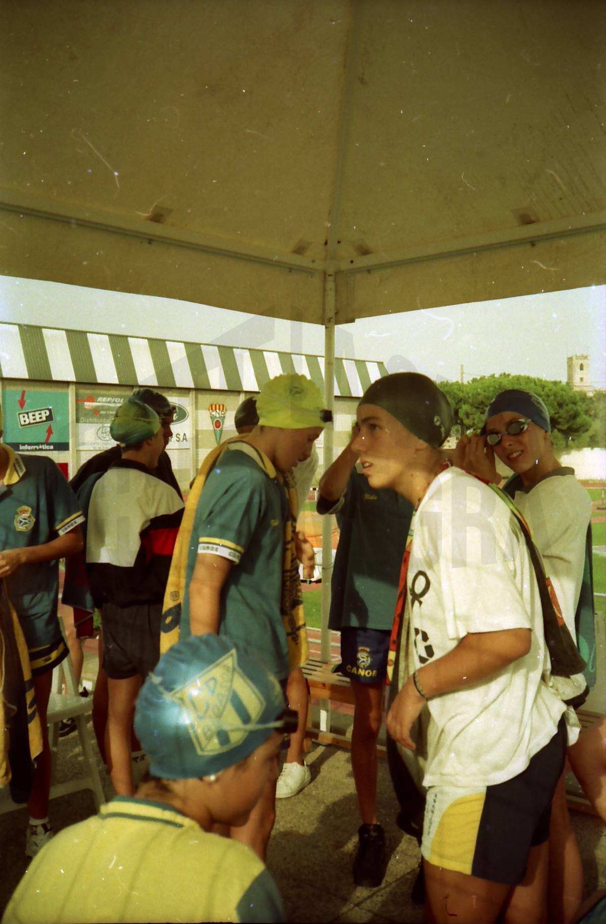 Varios nadadores bajo una carpa