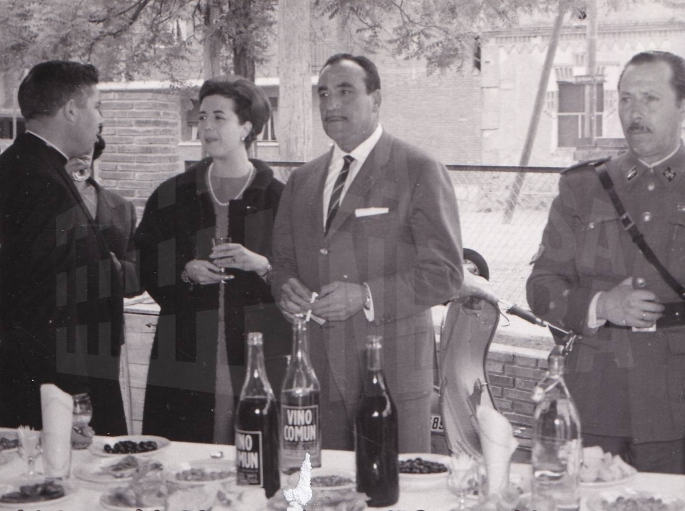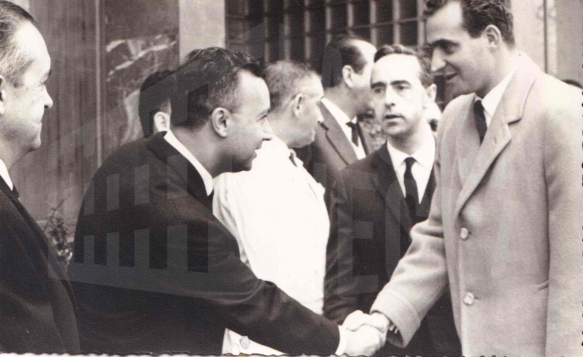 Varios señores esperan al Príncipe Juan Carlos de Borbón en la fábrica de MAFE en Aranjuez