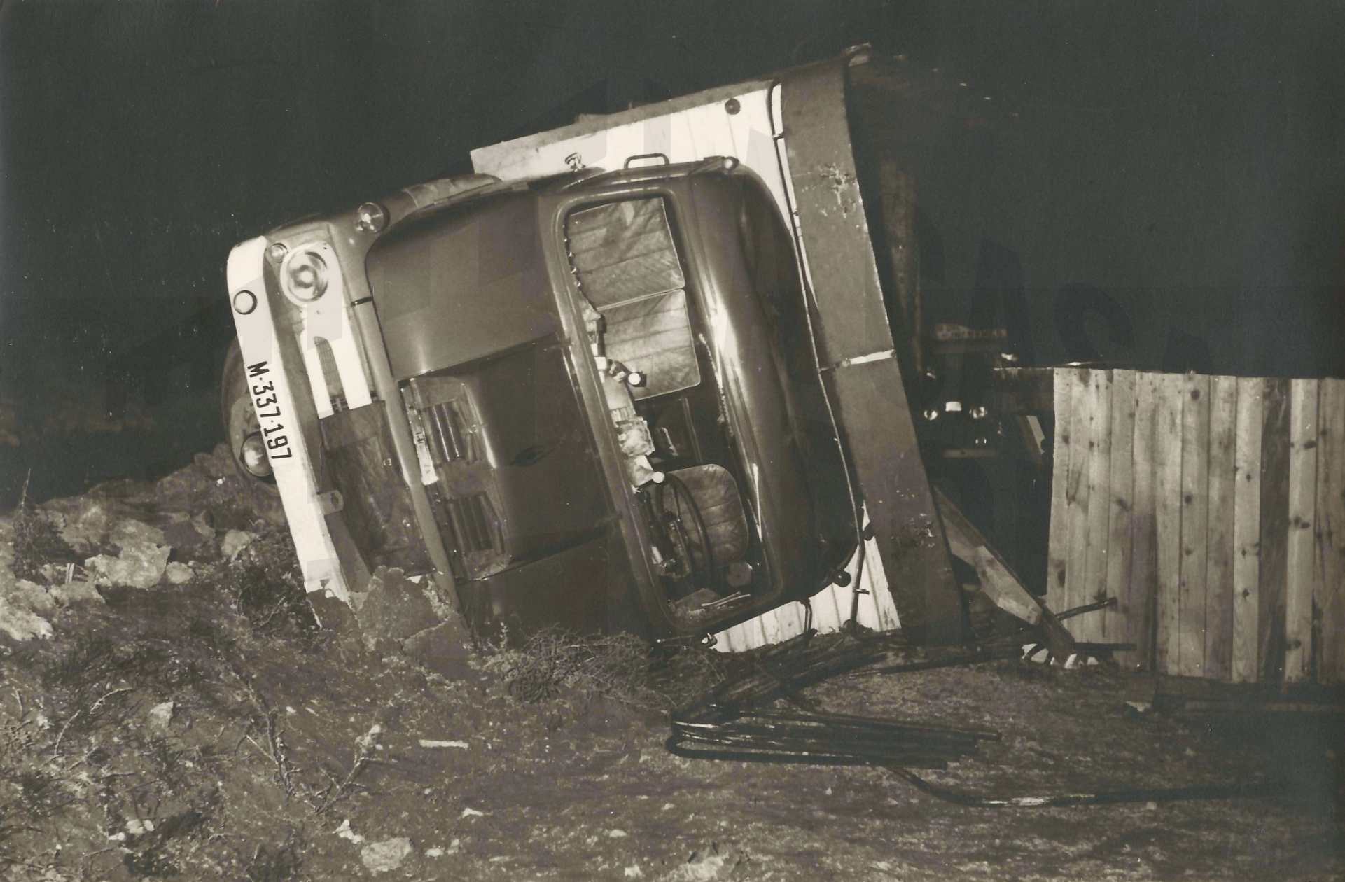 Vehículo SEAT 600 accidentado en las cercanías de Aranjuez