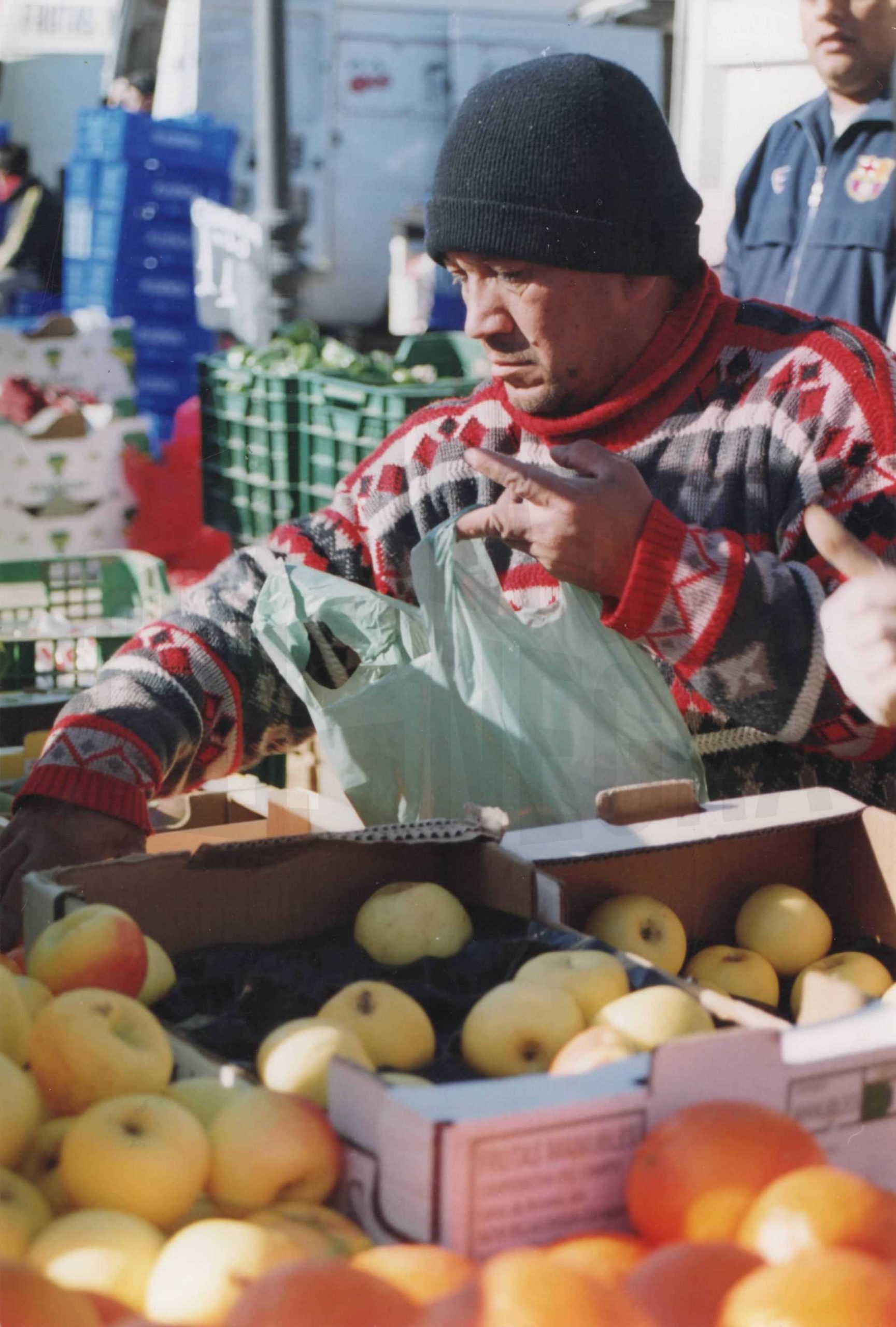 Vendedor de un puesto de frutas en el Rastro de Aranjuez
