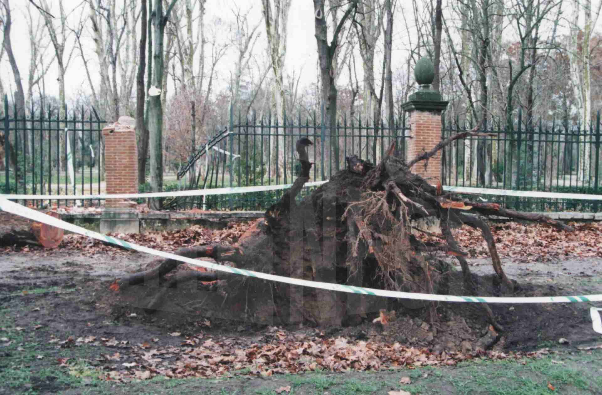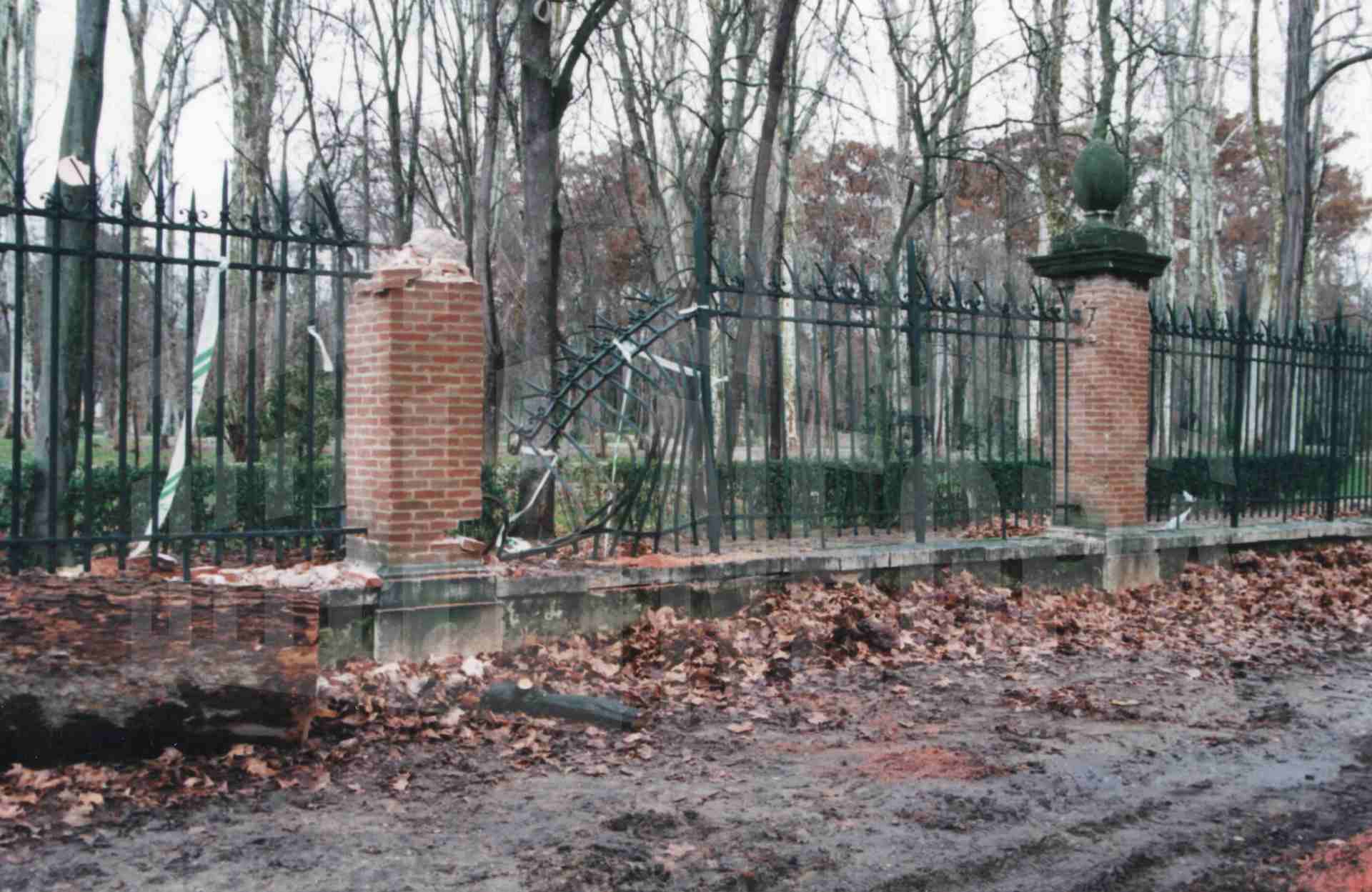 Verja del Jardín del Príncipe deteriorada tras caída de árbol, en Aranjuez