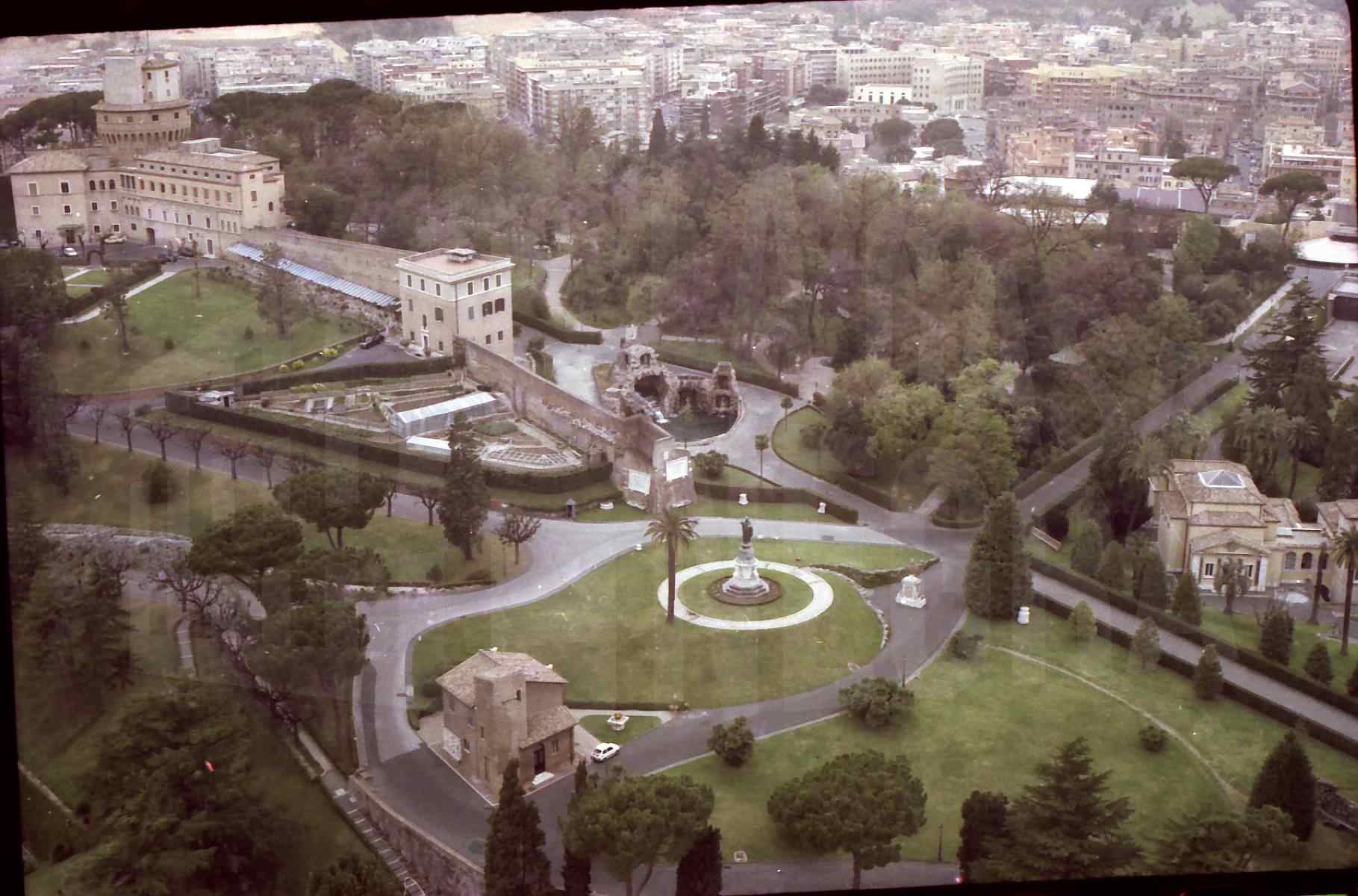 Vista de los Jardines Vaticanos desde una terraza de la Basílica de San Pedro del Vaticano en Roma