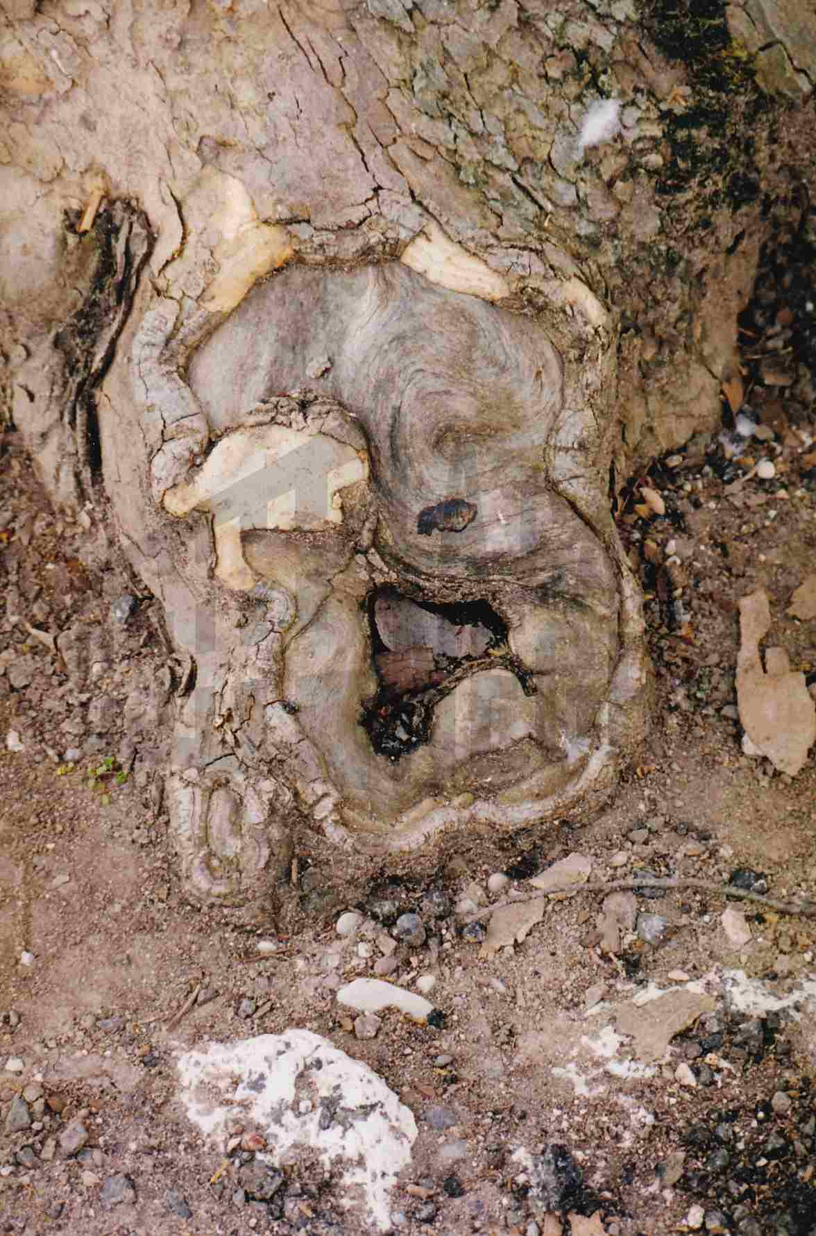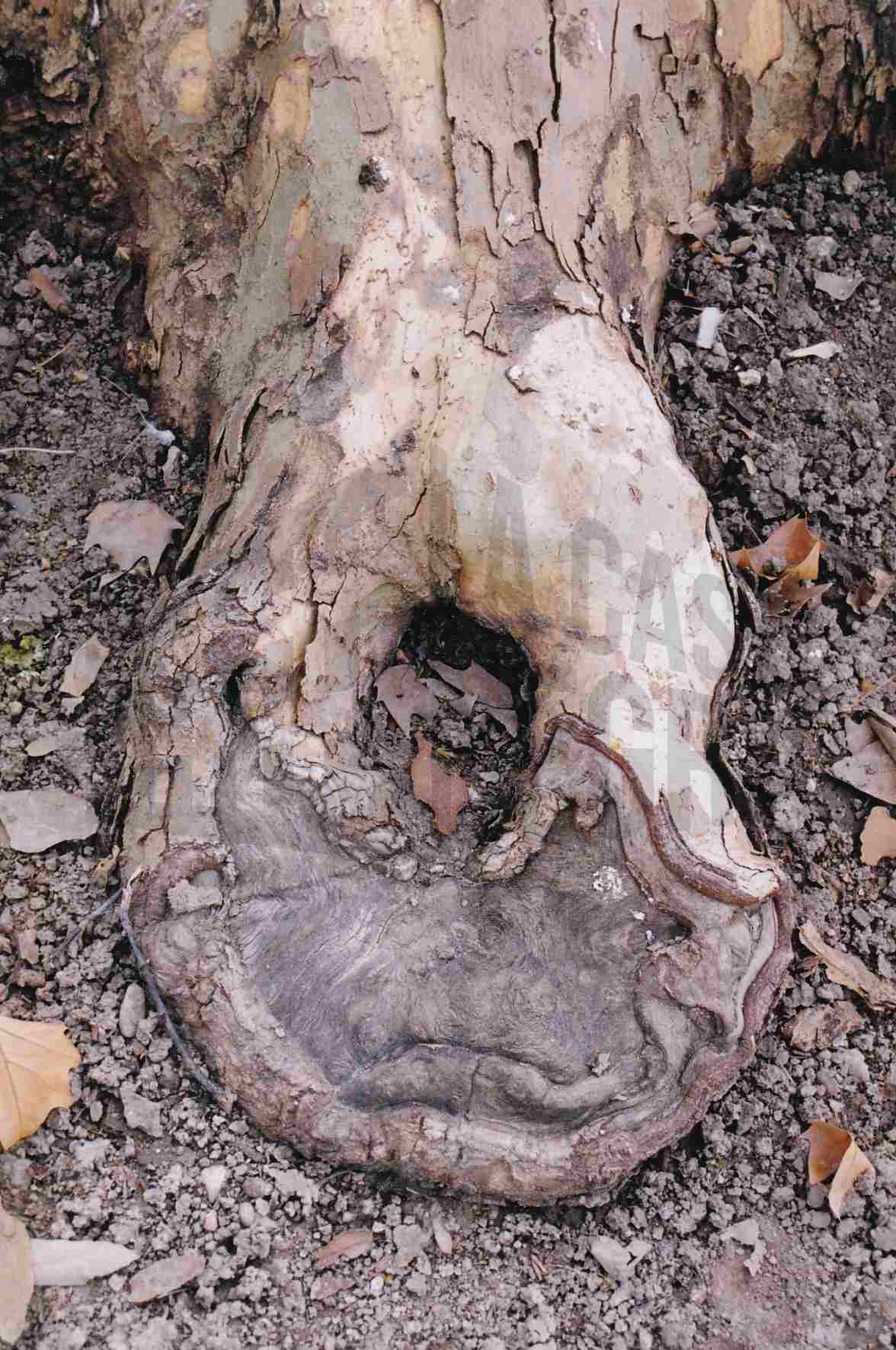 Zona inferior de un plátano sin corteza y con un agujero