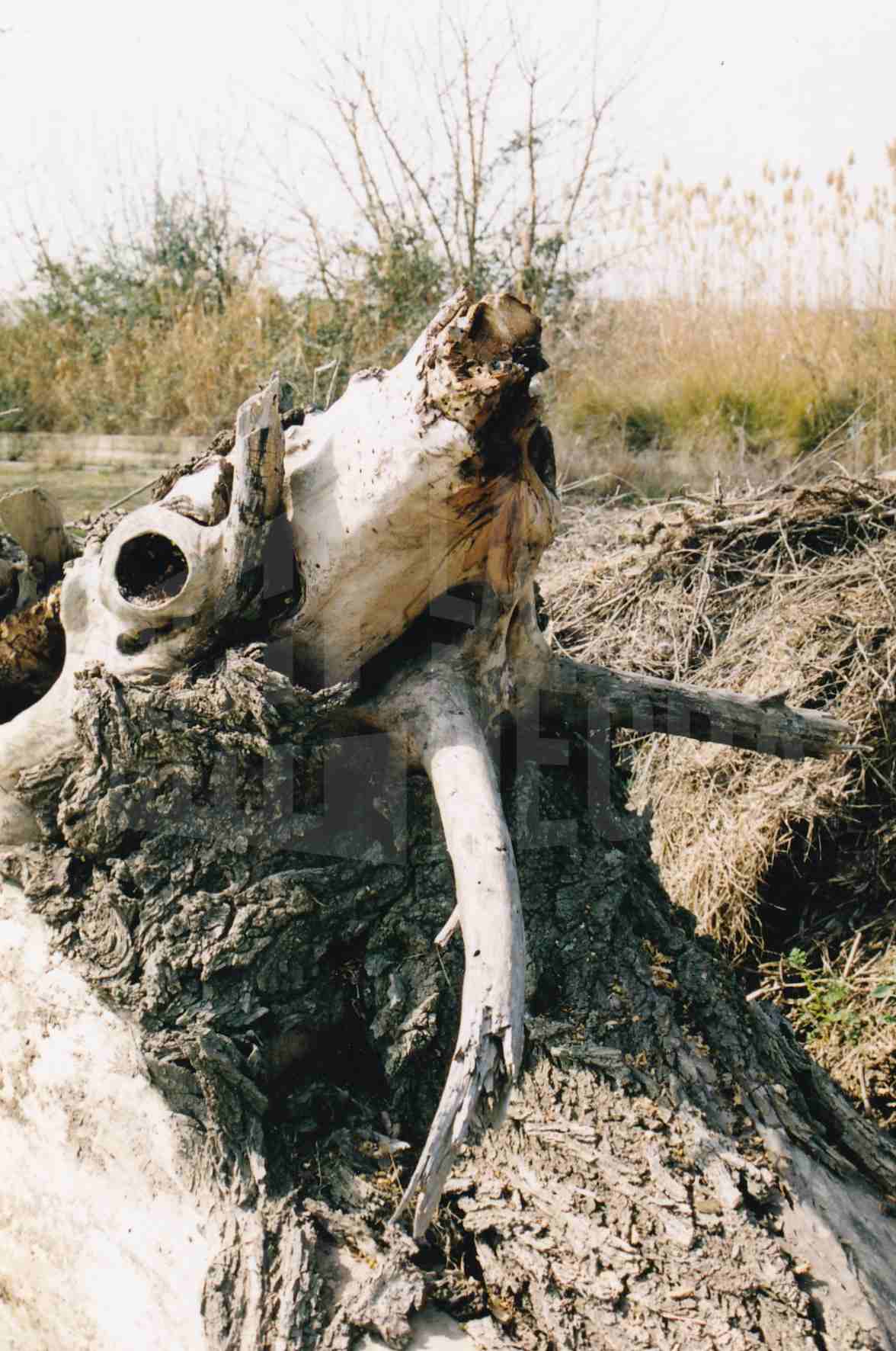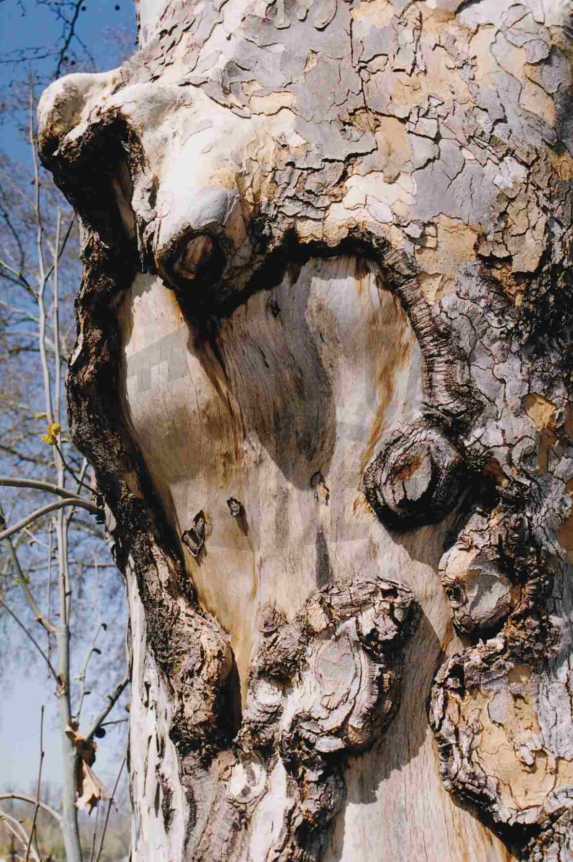 Zona sin corteza y con protuberancias en el tronco de un plátano